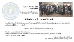 Druhý pátek v lednu 2026 pořádáme opět po roce večírek – tentokrát v Kopřivnici v restauraci u koupaliště. Zájemci z řad členů AKEZ, ale také dalších běžců i neběžců se mohou hlásit u Pepy Kvity. Součástí večírku budou i kulatiny Saši Neuwirtha 🙂