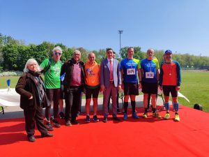 David a Martin běželi půlmaraton časem 1:29:32 (2. v kategorii, 37. z 363 doběhnuvších) a 1:35:26 (7. v kategorii, 76. celkově), Dušan 10 km časem 0:39:35 (3. v kategorii, 60. z 467). Dle pravidel závodu byli bohužel vyhlášeni pouze vítězové jednotlivých kategorií. Avšak k naší radosti jsme z rukou pana starosty Aliho Rabeha s přátelským poděkováním obdrželi medaile a společně se zástupci partnerských měst jsme byli vyfoceni.